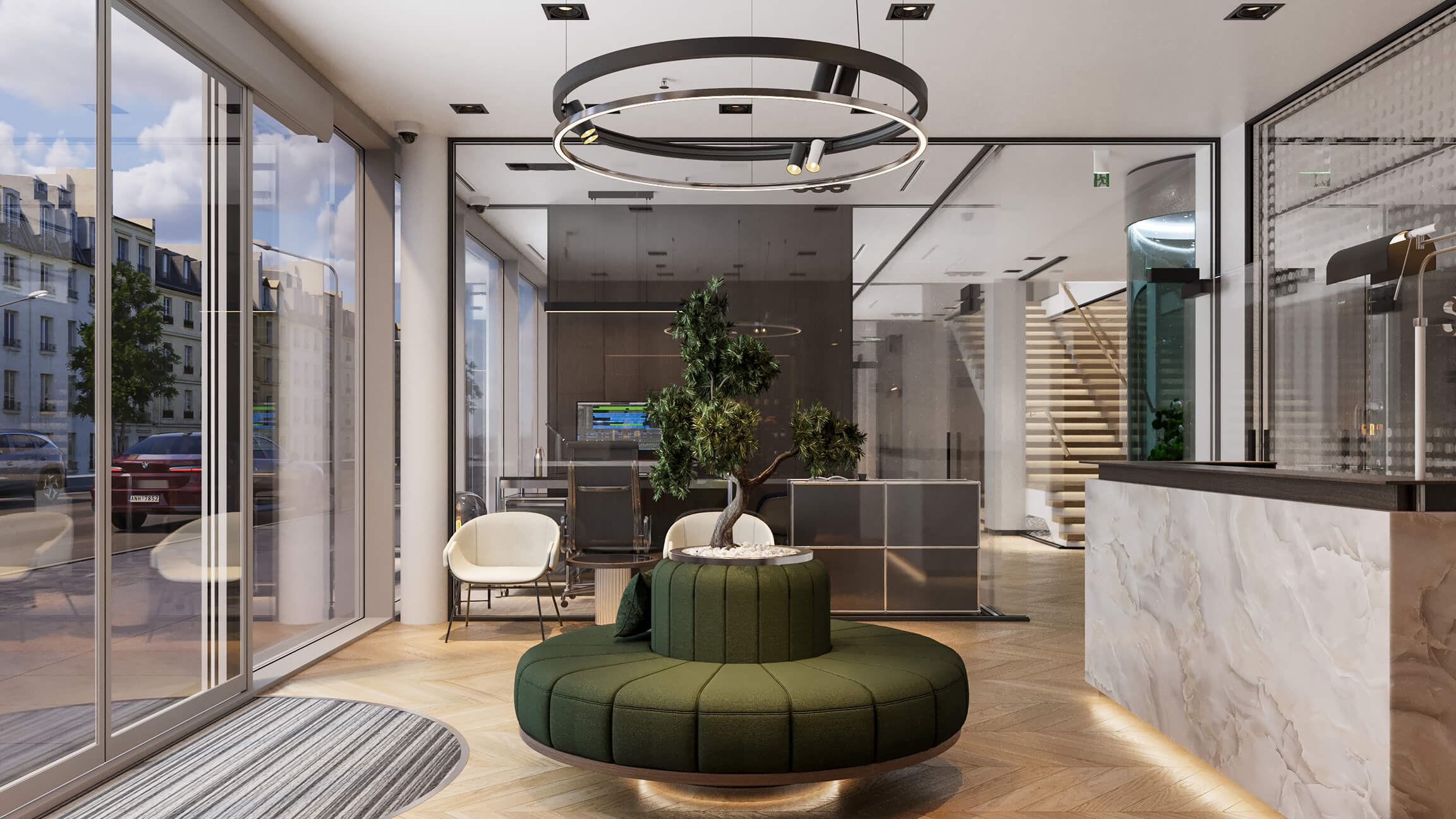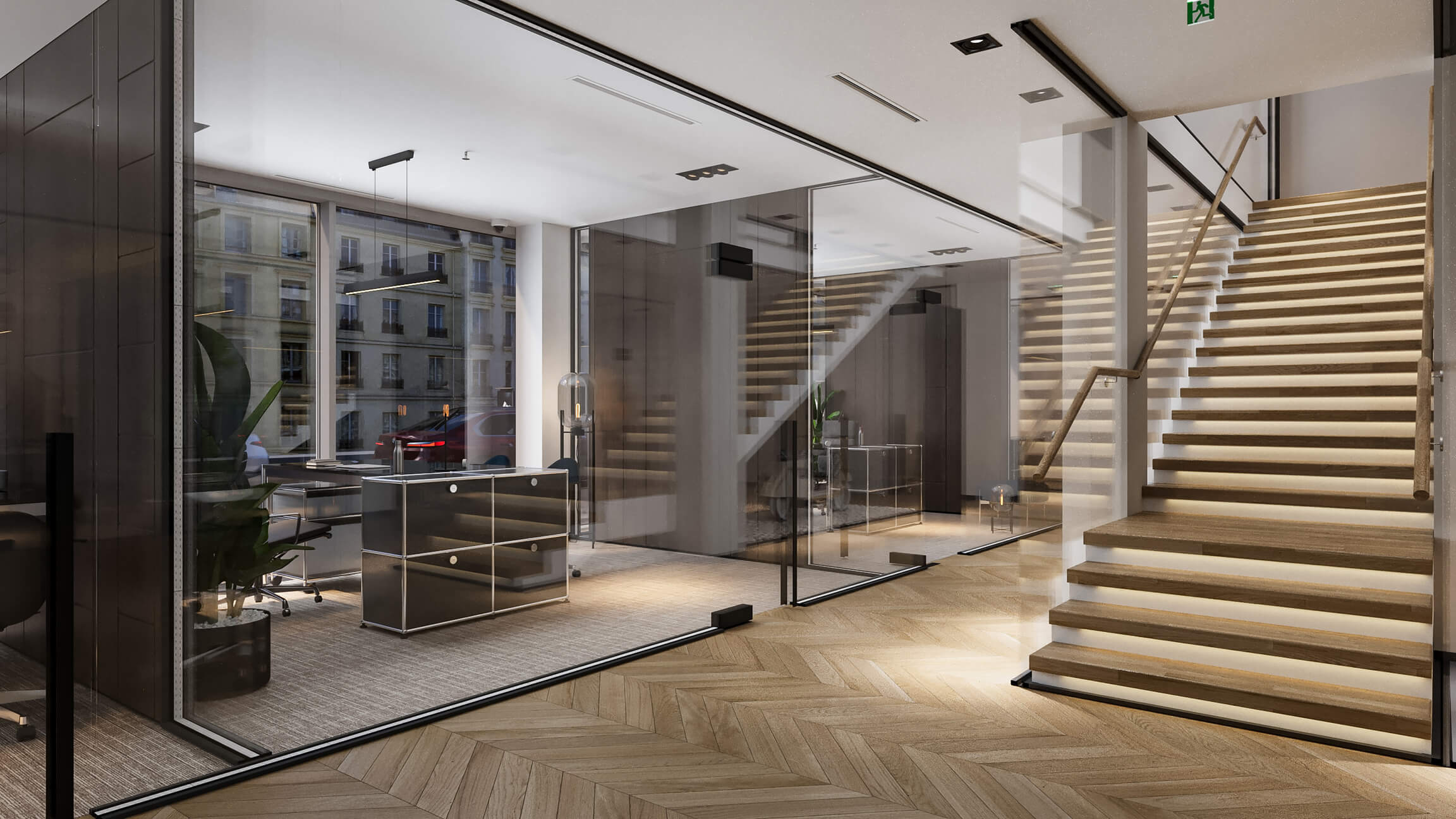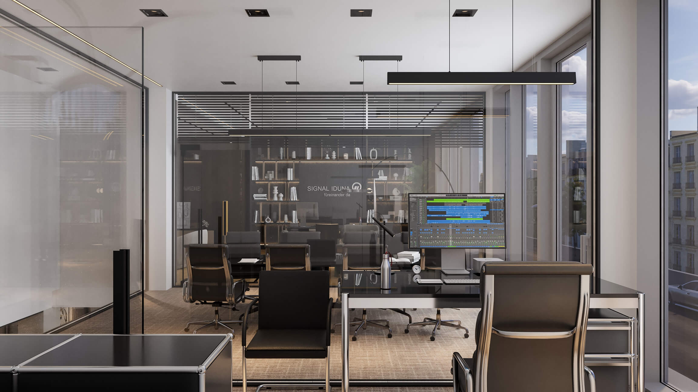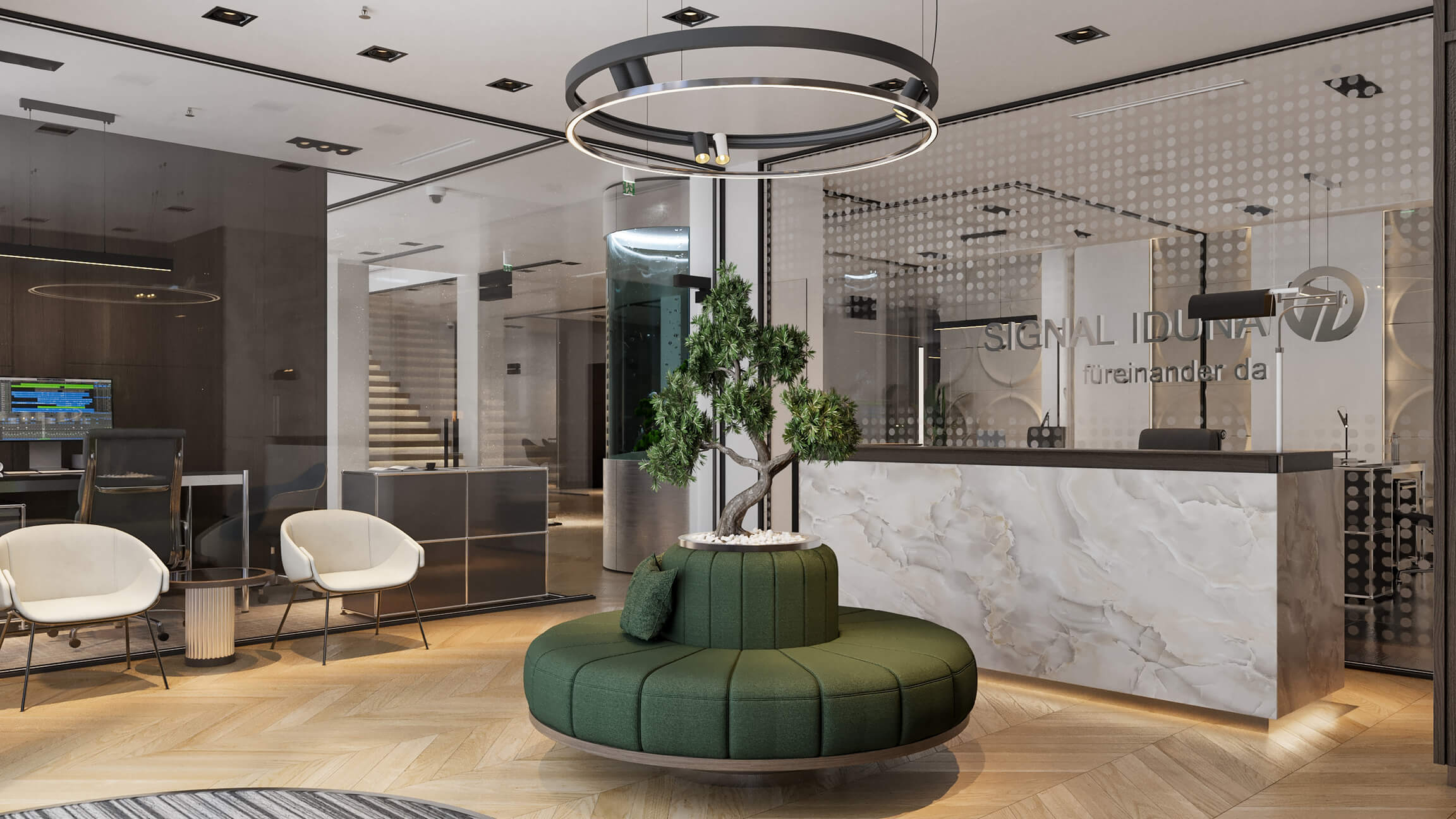 Das Signal Iduna Versicherungsbüro befindet sich im eleganten und historischen Stadtteil Berlin Charlottenburg und verkörpert eine gelungene Balance zwischen Minimalismus und moderner Gestaltung. Weiße Flächen in Kombination mit natürlichen Holzakzenten schaffen eine ruhige und zugleich professionelle Atmosphäre. Auffällige, moderne Lichtelemente setzen architektonische Details gekonnt in Szene und verleihen dem Raum eine dynamische Note. Dieses Projekt ist ein stilvolles Beispiel dafür, wie Funktionalität und ästhetische Raffinesse harmonisch zusammenwirken.